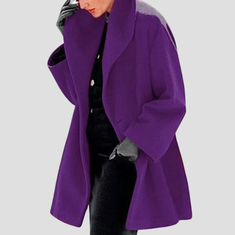 Discover the Isabella women's winter coat, crafted from soft polyester, designed to provide refined elegance and comfort during the colder months. Its loose fit and solid color offer timeless sophistication, perfect for both casual outings and more formal occasions.