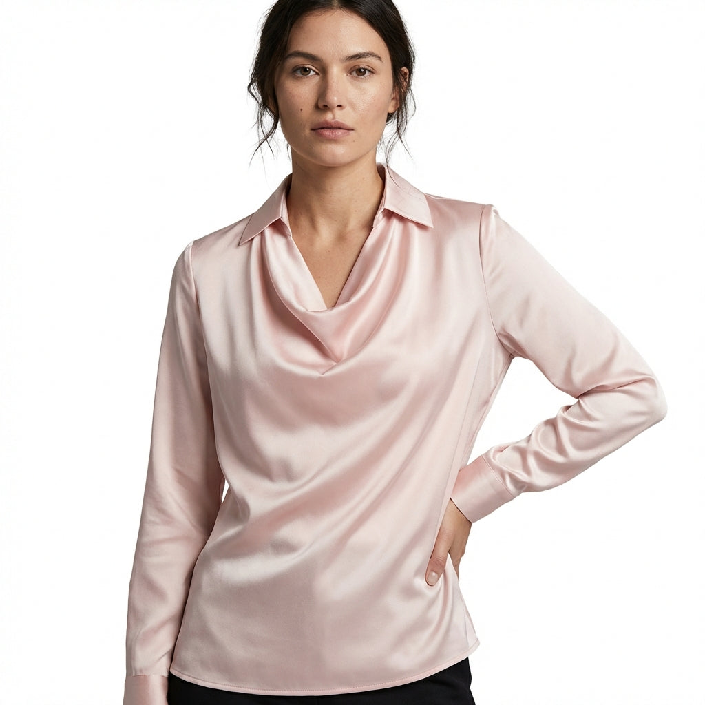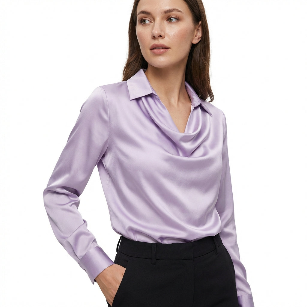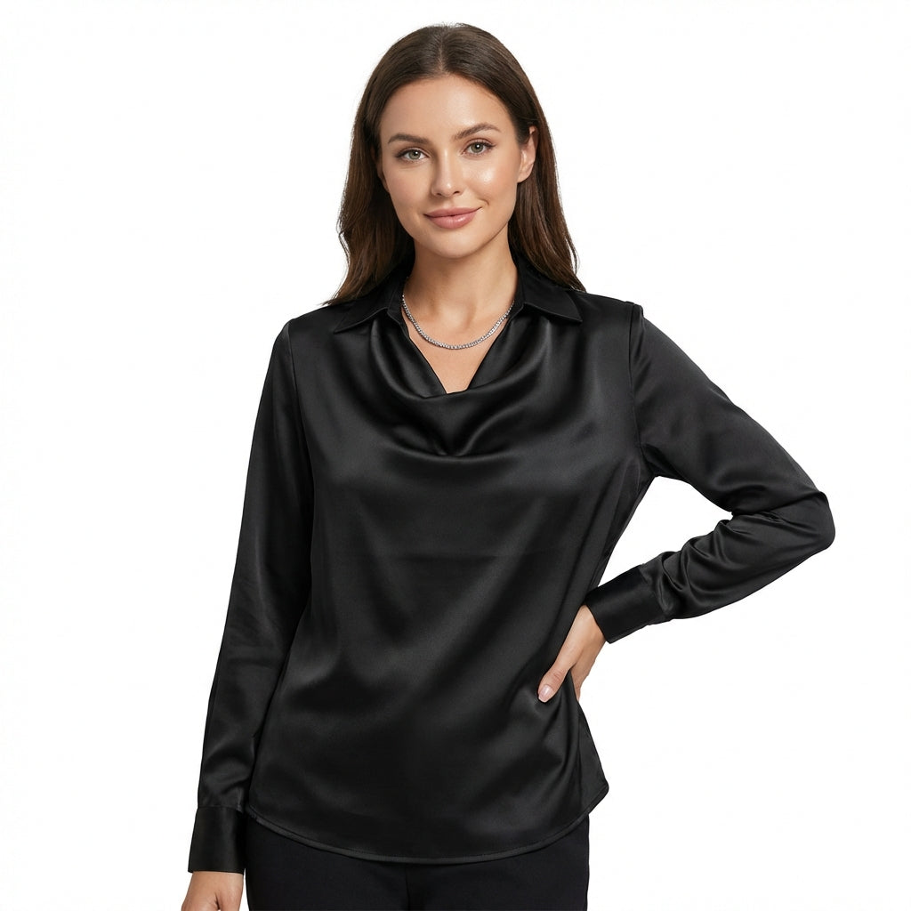 Women’s Satin Cowl Neck Long Sleeve Blouse